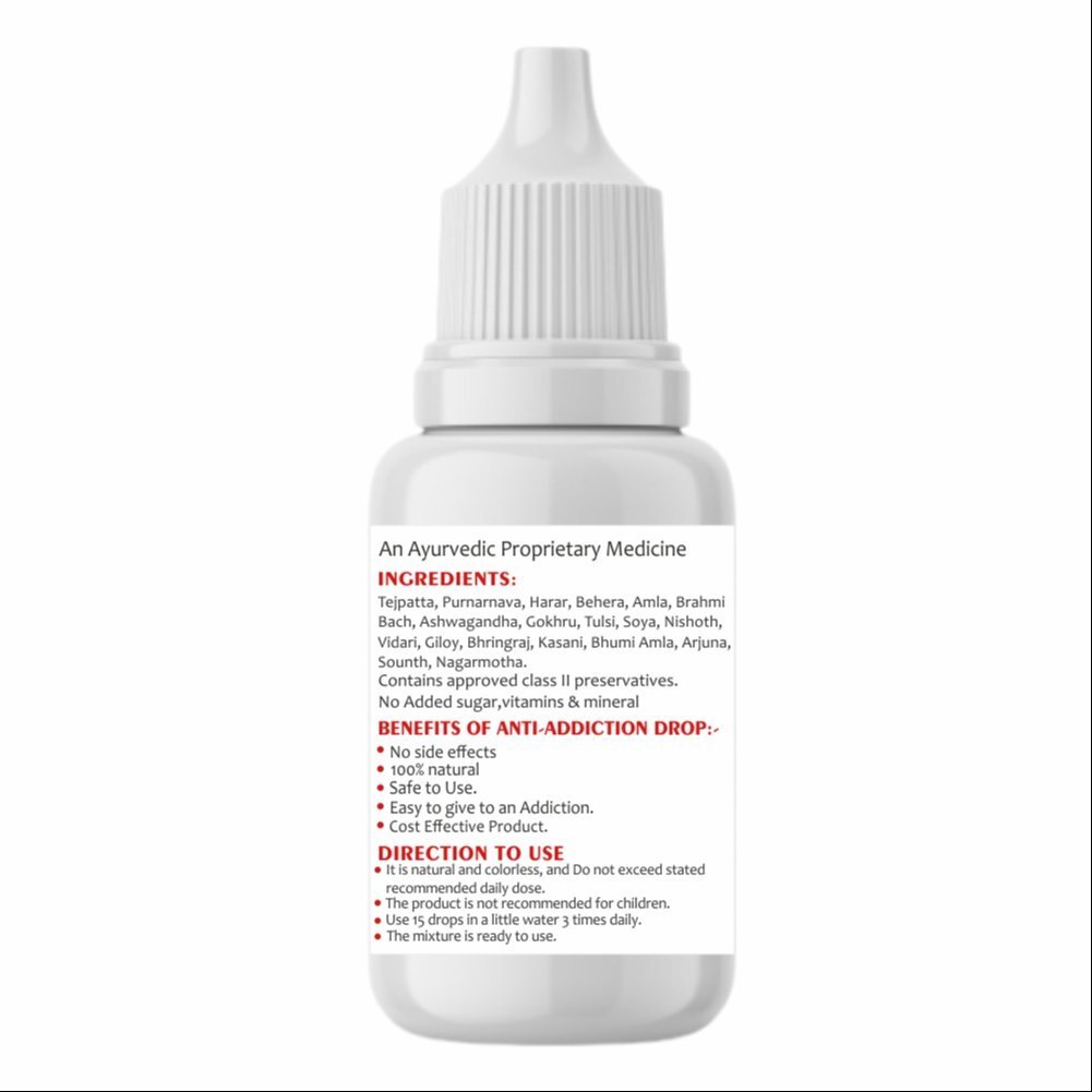Nutricio Pro Anti-Addiction Drops help to cure complications arise from consuming drugs/alcohol / smoking and also relieves pain, mental stress etc. It helps in balancing the emotions, and mental and psychological responses of human beings and also gradually by eliminating cravings for these addictions.